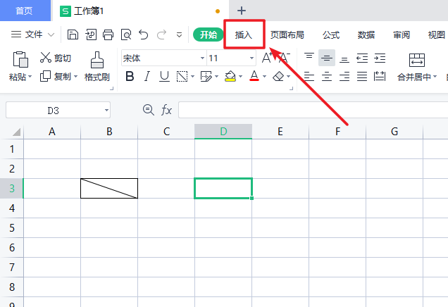 4、此时鼠标呈十字形状,将光标放置需要划线的单元格左上方;