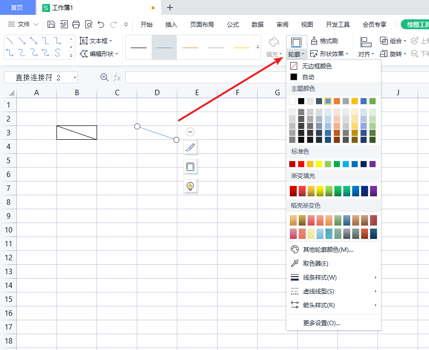 5、拉动鼠标,即可画出斜线,还可自定义斜线颜色。