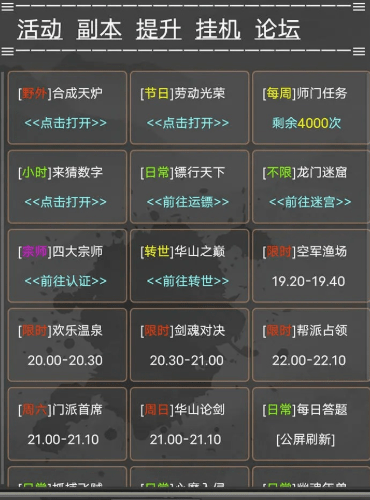 在漠江湖,世界充满了各种各样的任务和活动。你可以接受江湖上的各种挑战和委托,保护无辜,逮捕恶棍,或者参加各种武林会议,比如华山论剑。你也可以探索世界各地的秘密和迷宫,寻找珍贵的财富和遗产。