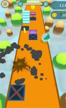 2、玩家控制白球撞击前方的障碍物,但要小心不要撞到黑色的尖刺!