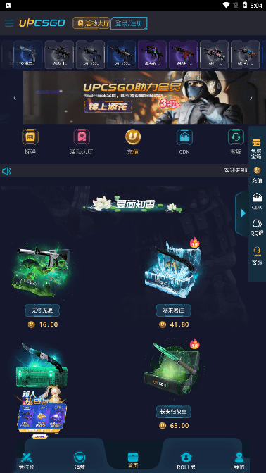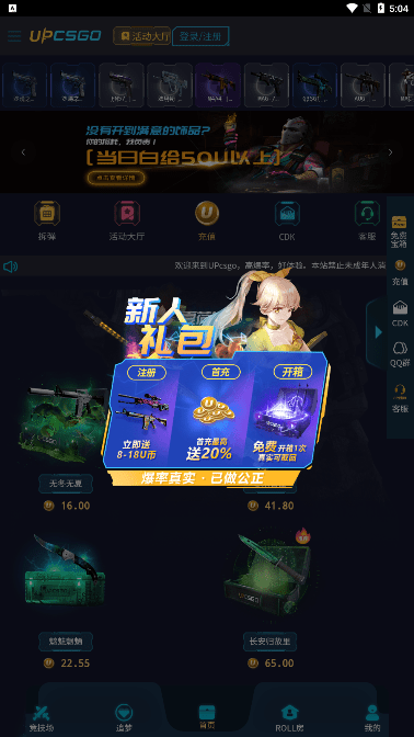 upcsgo应该算是比较良心的,爆率也还不错,新人可以领取免费宝箱,