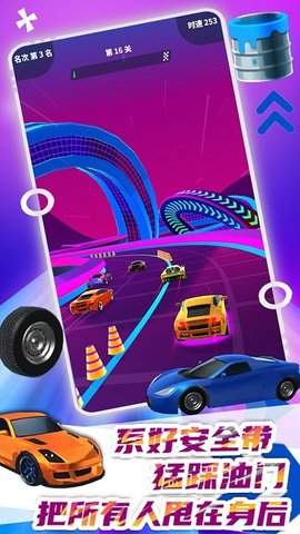 2、每辆飞驰的汽车都有独特的属性和道具组合。如果玩家找到非常强大的组合,他就能成为游戏中的强者。