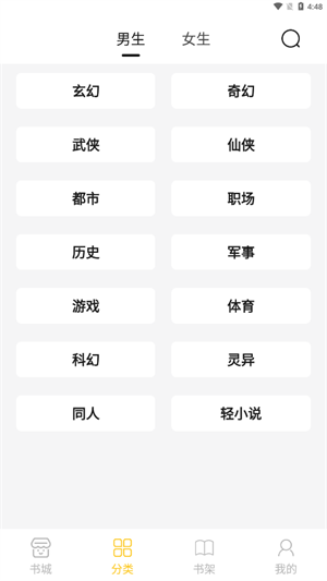 2、丰富的小说题材分类,男女专属阅读版块,更多细分类别