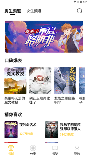 2、分类:按照小说类型分类,可以找到最热门的小说题材;