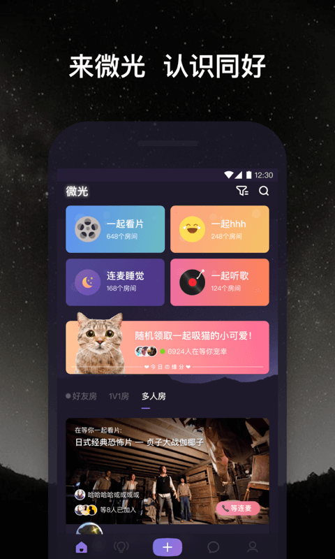 微光app安卓版是一款易于使用的聊天和社交应用程序。通过兴趣选择,您可以通过匹配结识更多与您有相同兴趣的朋友。还有很多精彩电影等你一起观看。快来下载体验,开始你的奇妙邂逅吧。感兴趣的朋友快来下载这款软件体验一下吧!